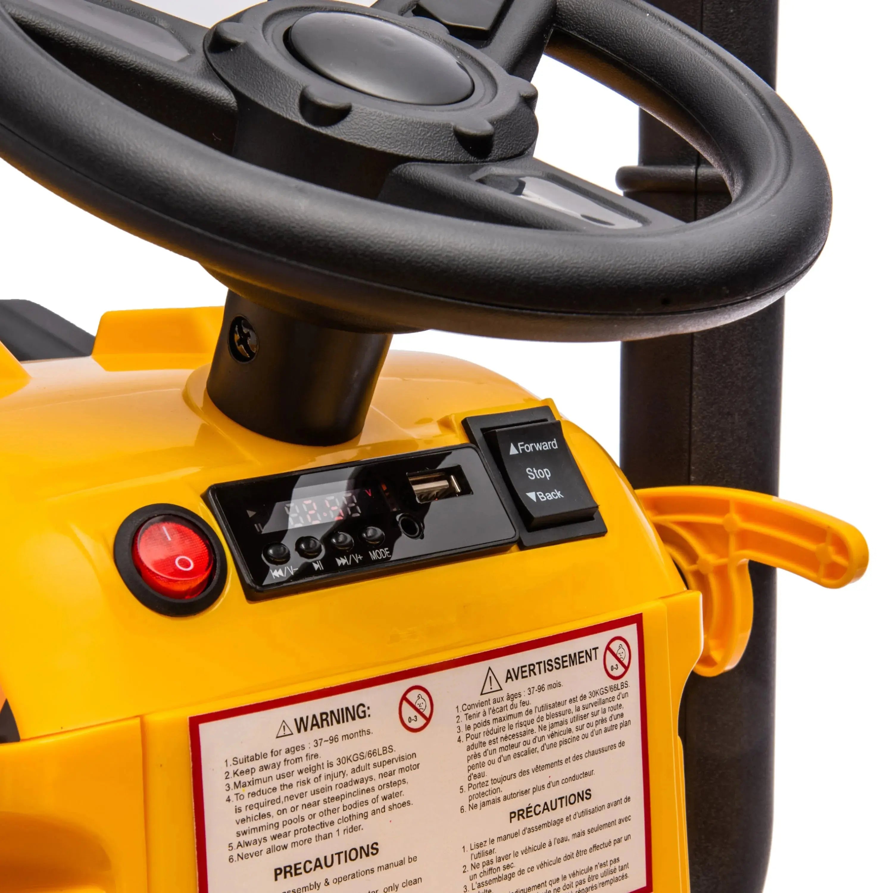 - Mp3 + USB + Aux-in: Add some tunes to your kid's rides with the Mp3 + USB + Aux-in feature that comes with this excavator. They will always have something to jam out to in the car, no matter where they go.