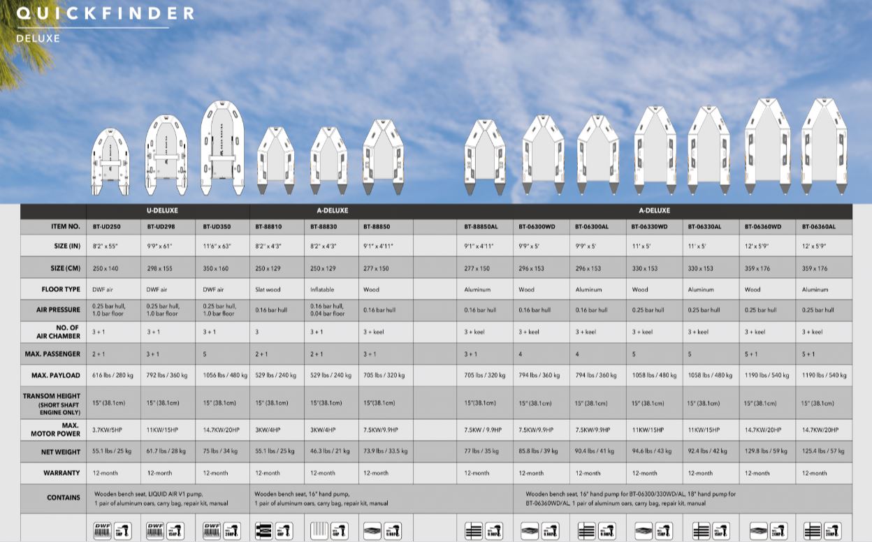 Featuring U-type bow and DWF air deck, the new DELUXE series is more complicated in construction and production. And our 20 years of experience in inflatable watercrafts is just the guarantee of our professionalism in making this series of the highest quality.