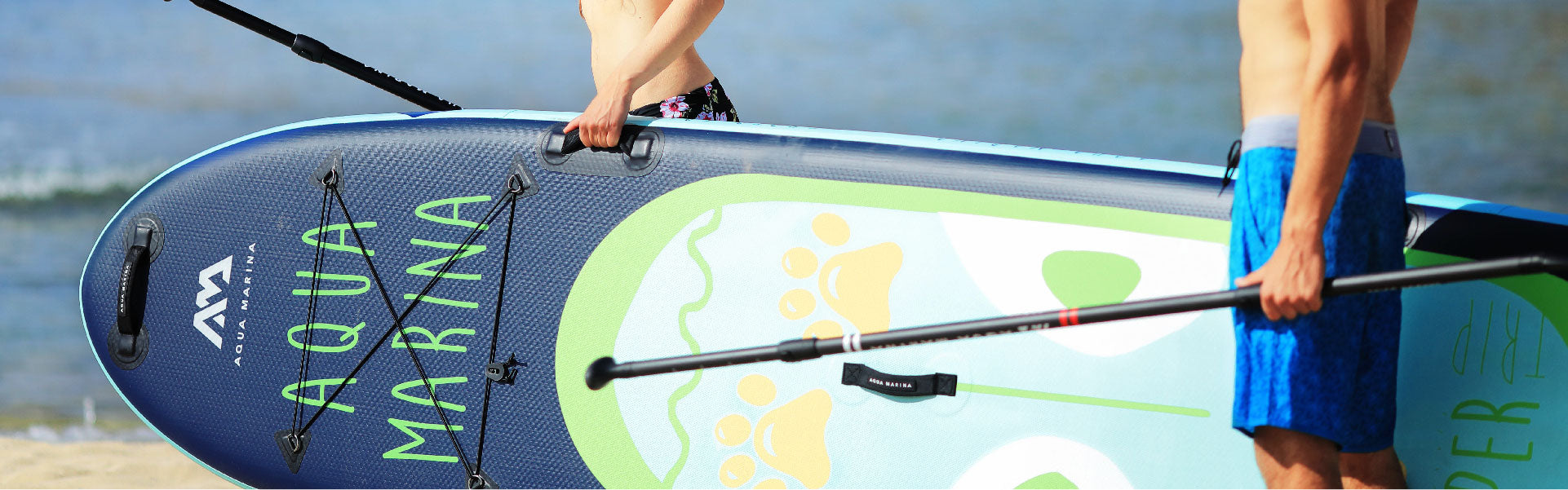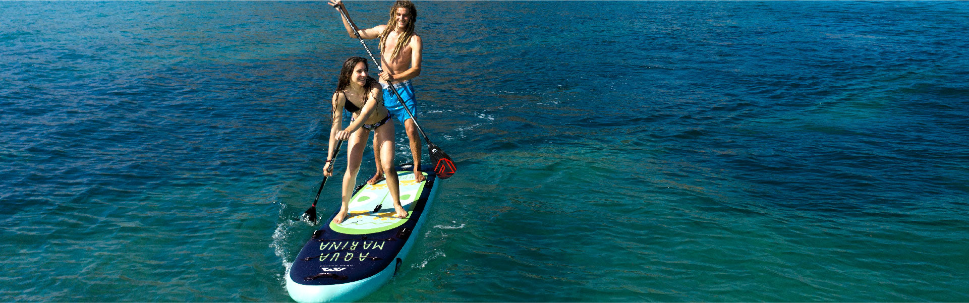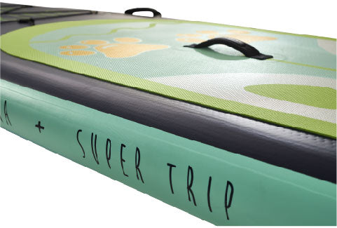 We have re-designed the SUPER TRIP series for 2021. These models enable you to share the experience of stand up paddling with a loved one, kid, pet or your best friend. The new SUPER TRIP series is in two lengths of 12’2’’ and 14’0’’, each in width of 32’’ and 34’’, which gives great stability while the long parallel outlines make them quite fast. There is a huge amount of space in the SUPER TRIP TANDEM board, so riders can carry enough belongings for a long-distance exploration. The brand-new double layered TANDEM model is supplied with two valves and two pumps which enable both riders to have some warm up before getting on the water.