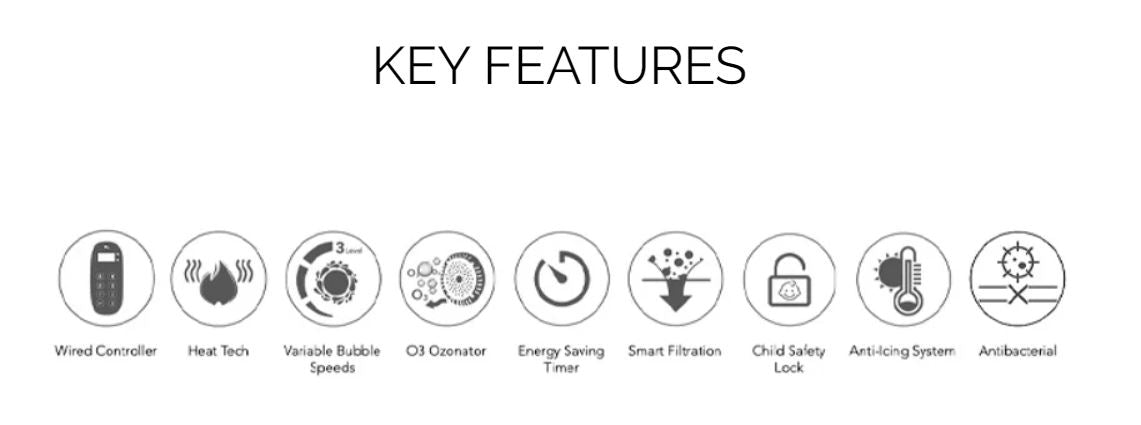 •WIRED CONTROLLER: Integrated wired controller, to be stored outside of the tub to easily access all the functions. Minimized setup process to kick off the joy moment in a quickest way