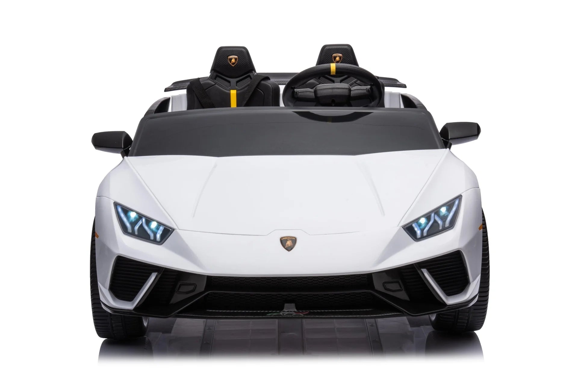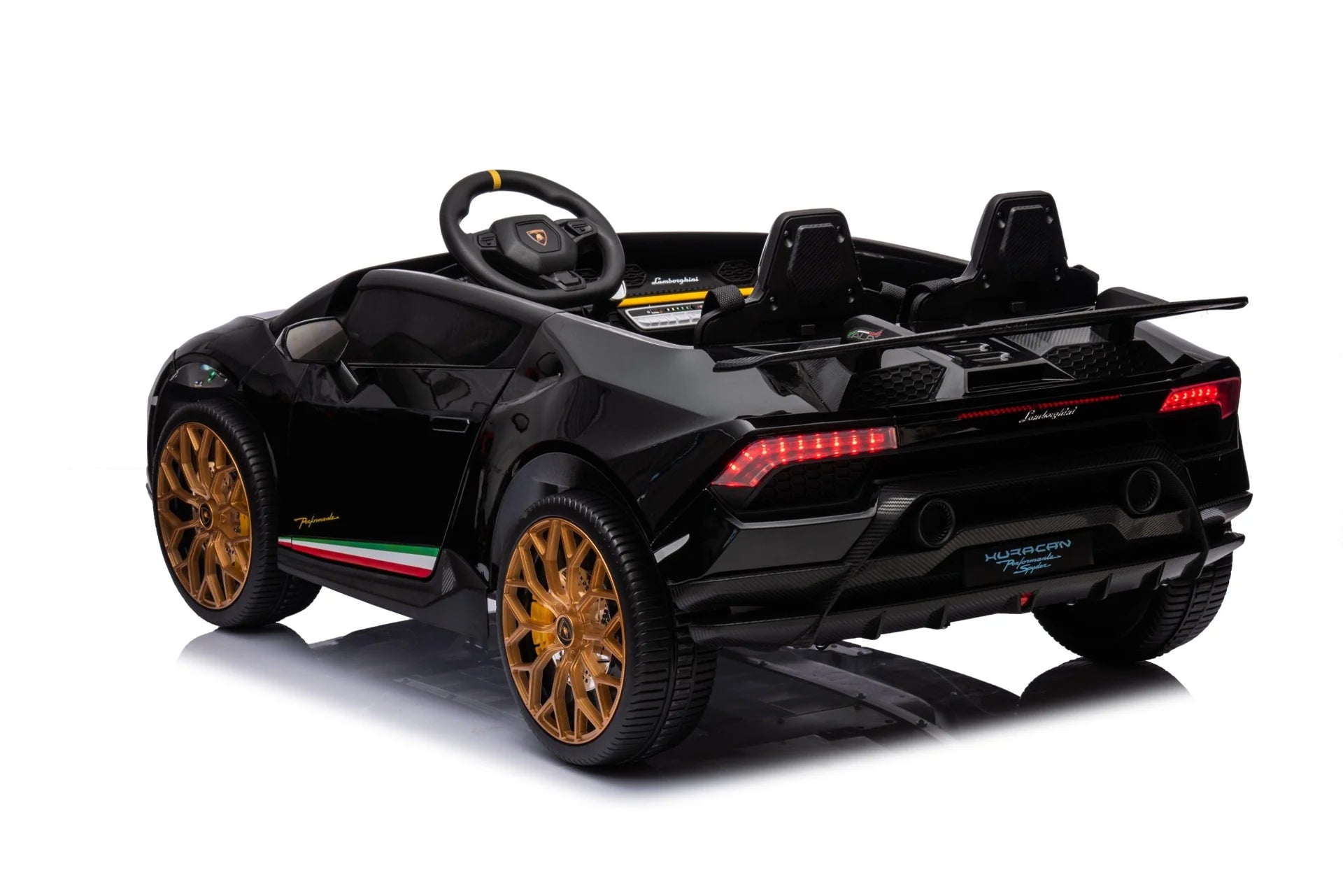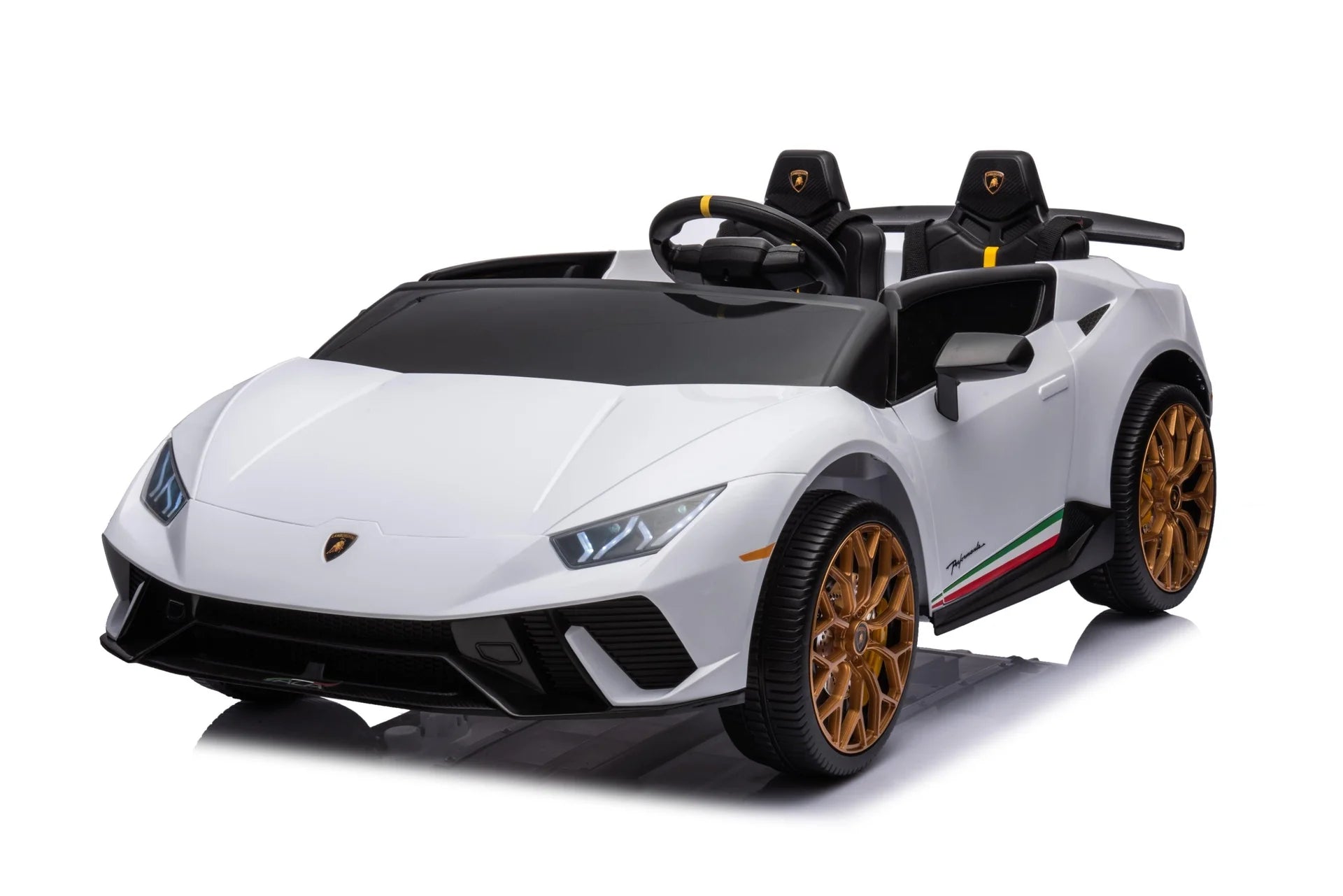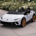 - Luxurious Lamborghini Design: A 2-seater ride-on that embodies the sleek design of a real Lamborghini Huracan, available in white, pink, and black colors.