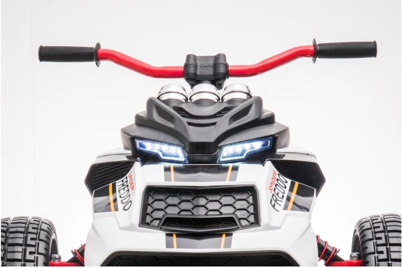 The Freddo Spider 2-Seater Ride-On 3 Wheel Motorcycle offers an exhilarating adventure for kids aged 37-96 months. It's powered by a 24V battery and features two 45W motors, allowing for speeds between 2.7 to 5.4 MPH. Kids can enjoy music through the USB slot with MP3/AUX input and Bluetooth connectivity, and the ride is illuminated by LED lights. This 3 Wheel Motorcycle is equipped with a sturdy rear suspension for smooth rides and comes with a 2.4G remote control for parental supervision. With up to an hour of running time, this 3 Wheel Motorcycle is perfect for outdoor fun.