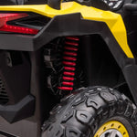 - We know that safety comes first in any car. In this case, this UTV has two speeds that adapt to the age and experience of your child, rear suspension but also parental remote control. Be part of your child's adventures by taking control from time to time, you'll have a lot of fun.