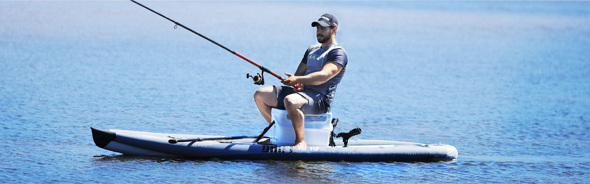 THE DRIFT’S DOUBLE SIDED RAIL DESIGN OUTLINE OFFERS MAXIMUM STABILITY FOR AN IDEAL PADDLING AND FISHING EXPERIENCE. FEATURES INCLUDE FULL DECK TRACTION PAD FOR COMFORT, TWO FISHING ROD HOLDERS, REMOVABLE FISH COOLER BOX WITH HIGH BACK SUPPORT (*OPTIONAL). THE SUPER TOUGH AND DURABLE DROP STITCH CORE MATERIAL MAKES FOR A STRESS-FREE TRIP FOR YOUR FAVORITE FISHING HOLE OR TREK DOWN A LAZY RIVER.