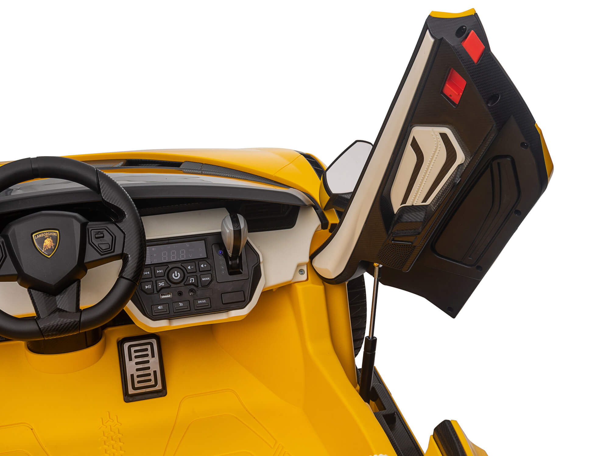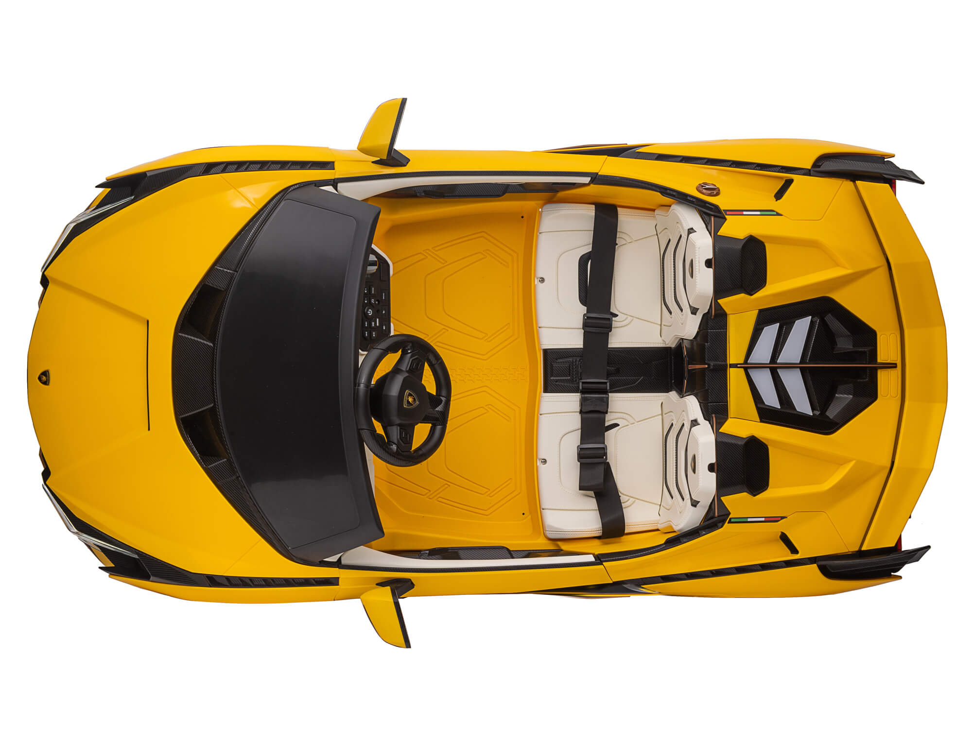 From a child’s perspective, the Sian is a showstopper. With butterfly-style opening doors, sharp angular lines, and realistic headlights and taillights, it captures the futuristic aggression of the real Lamborghini Sian. Whether cruising the driveway or rolling through the backyard, its presence is unmistakable.